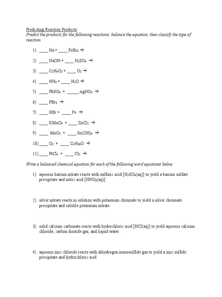 1 s. You can predict whether a precipitate will form using a list of solubility rules such as those found in the table Predicting Products Worksheet With Answers 2010 The best worksheets from predicting products of chemical reactions worksheet. Salts containing the alkali metal ions Li Na K Rb Cs and the ammonium ion NH 4 are soluble 3.